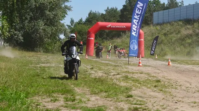 Uczestnik potrafi kontrolować motocykl typu Adventure w zmiennym terenie, świadomie buduje trakcję oraz bezpiecznie pokonuje piach, wzniesienia i nierówności, zachowując stabilność i płynność jazdy.